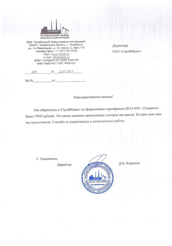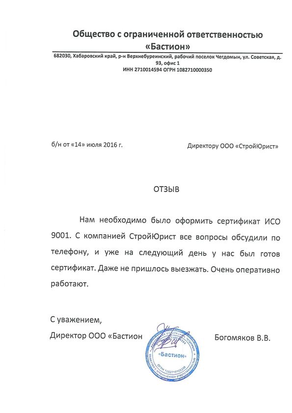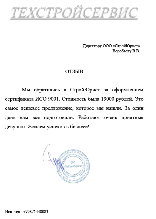 Отзывы клиентов "СтройЮрист" по ISO в Видном