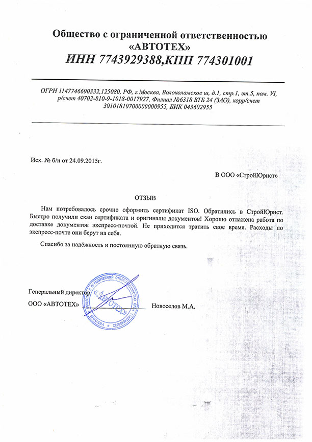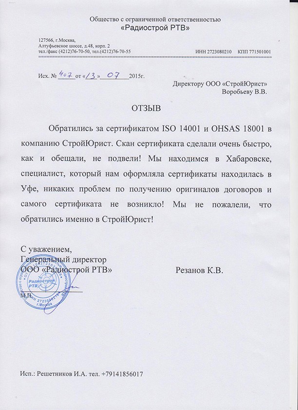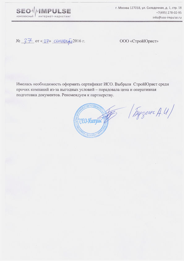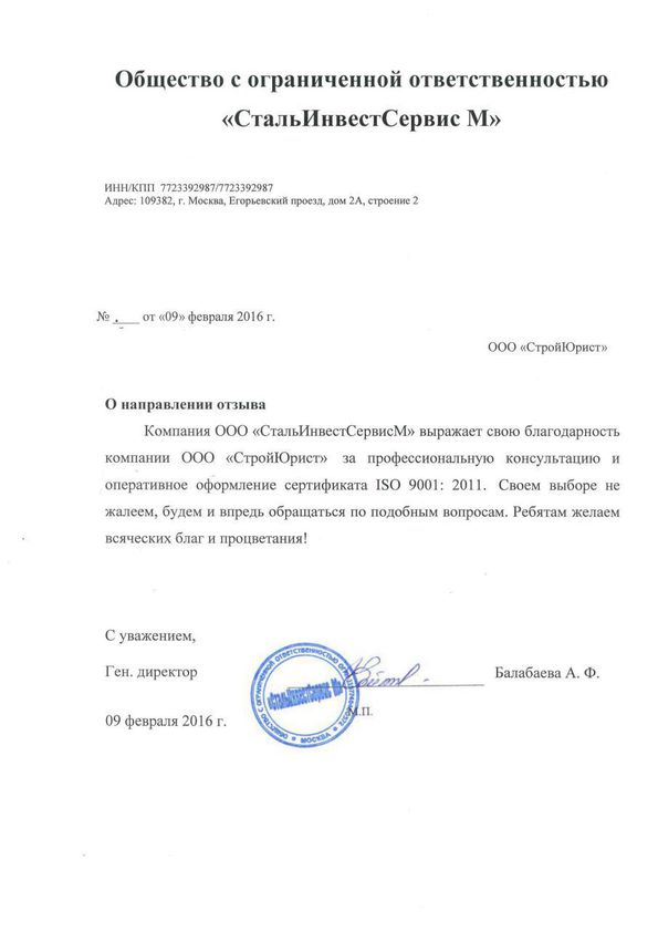 Отзывы клиентов "СтройЮрист" по ISO в Видном