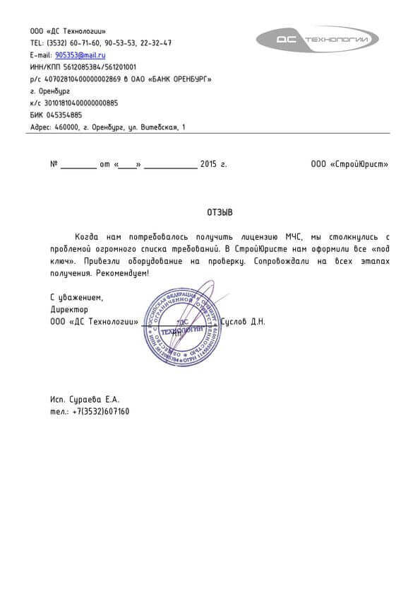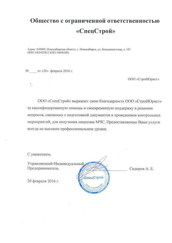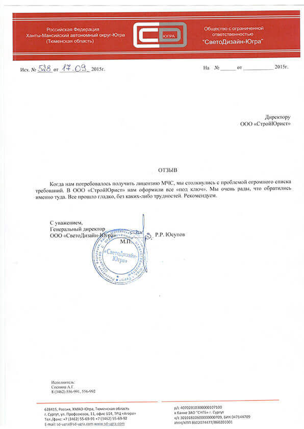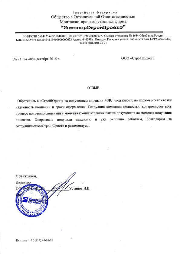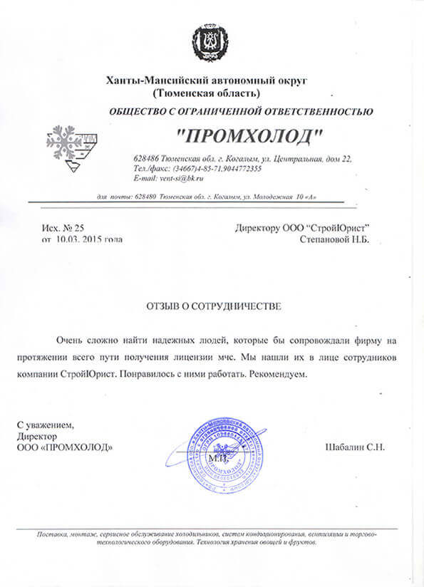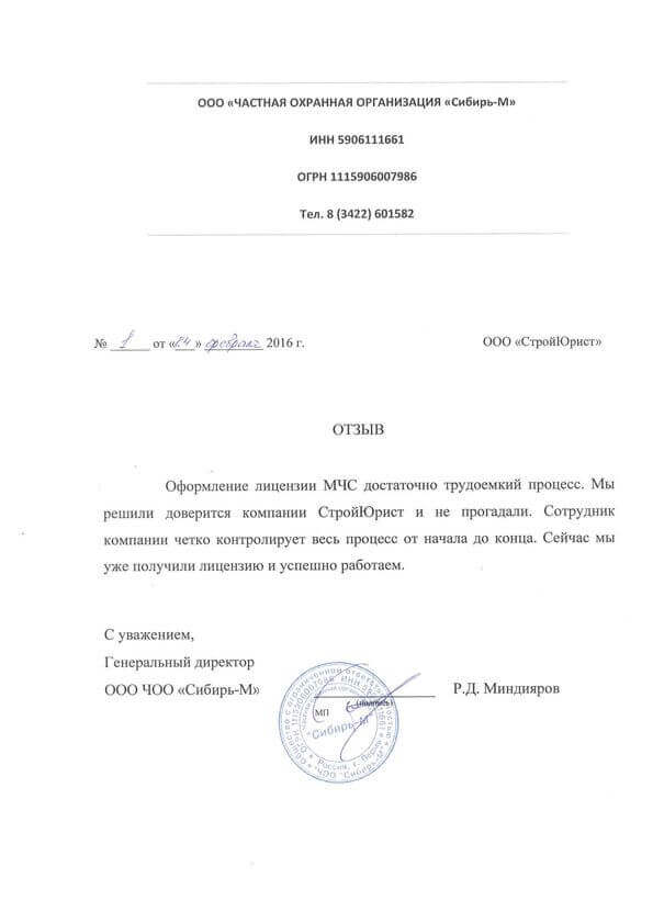 Отзывы клиентов "СтройЮрист" по лицензированию МЧС в Видном