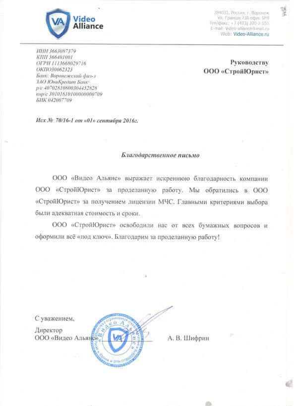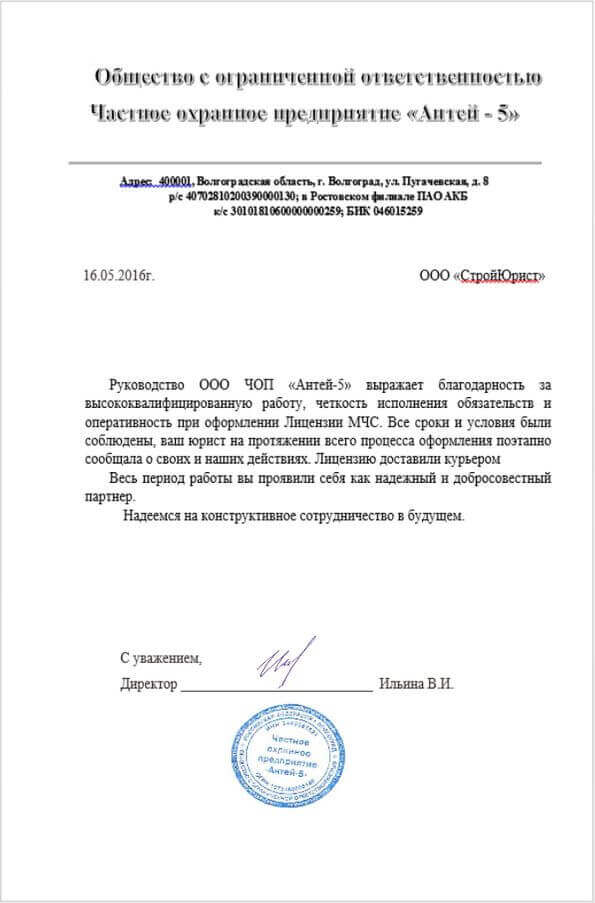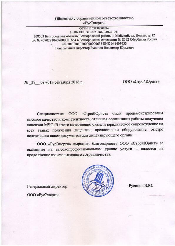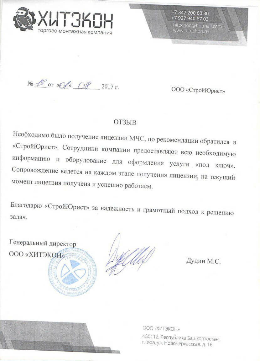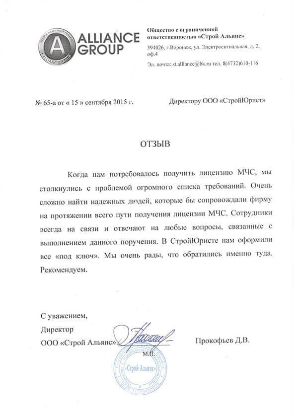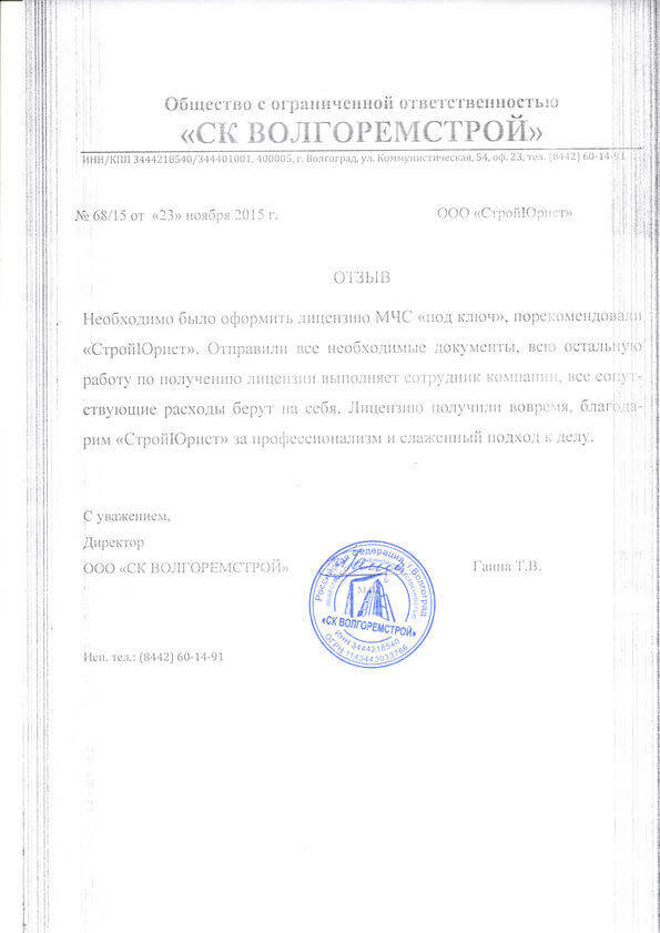 Отзывы клиентов "СтройЮрист" по лицензированию МЧС в Видном