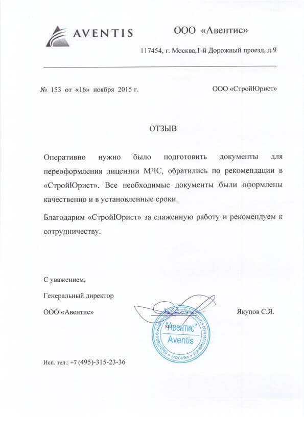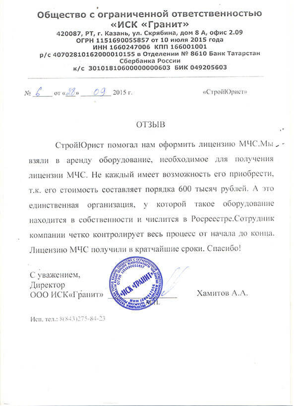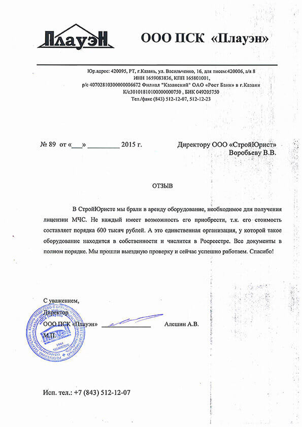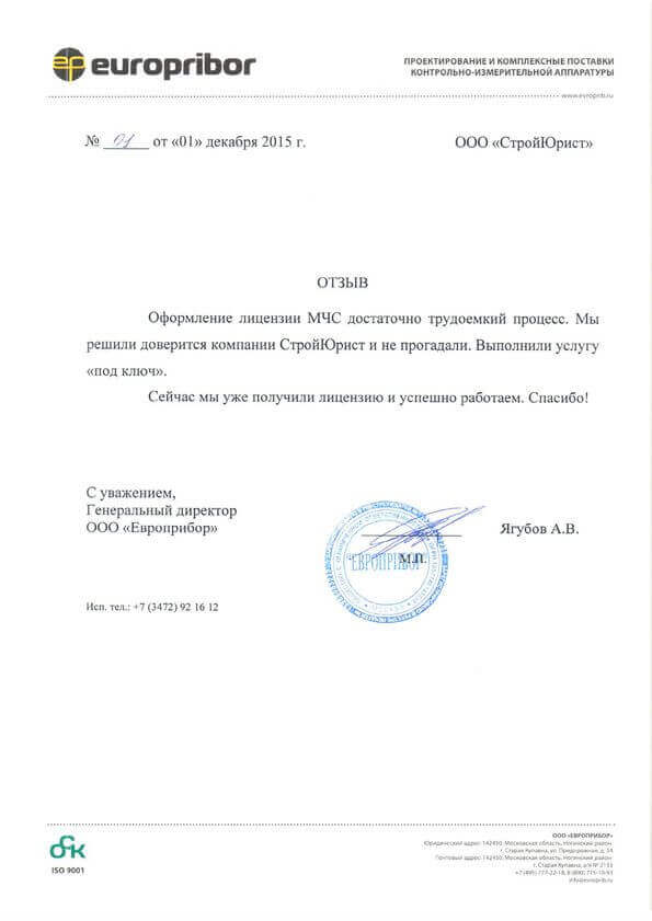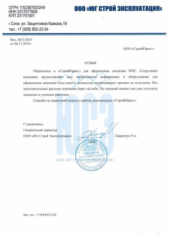 Отзывы клиентов "СтройЮрист" по лицензированию МЧС в Видном