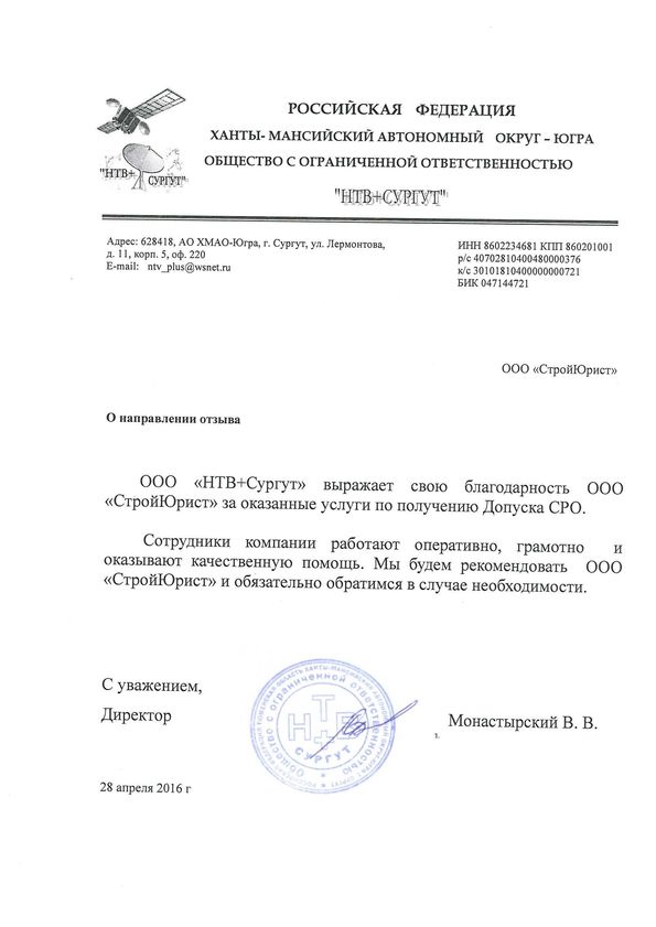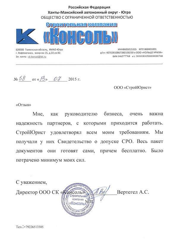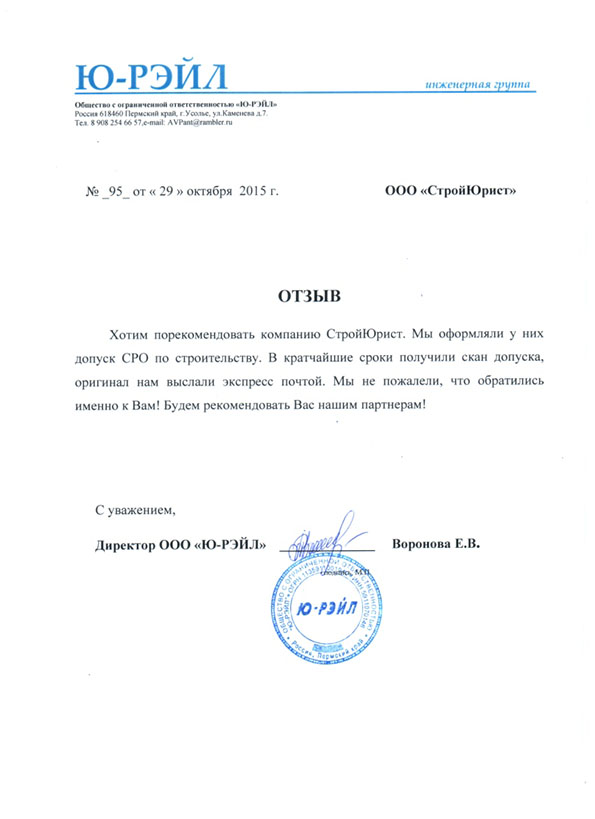 Отзывы клиентов "СтройЮрист" по вступлению в СРО в Видном