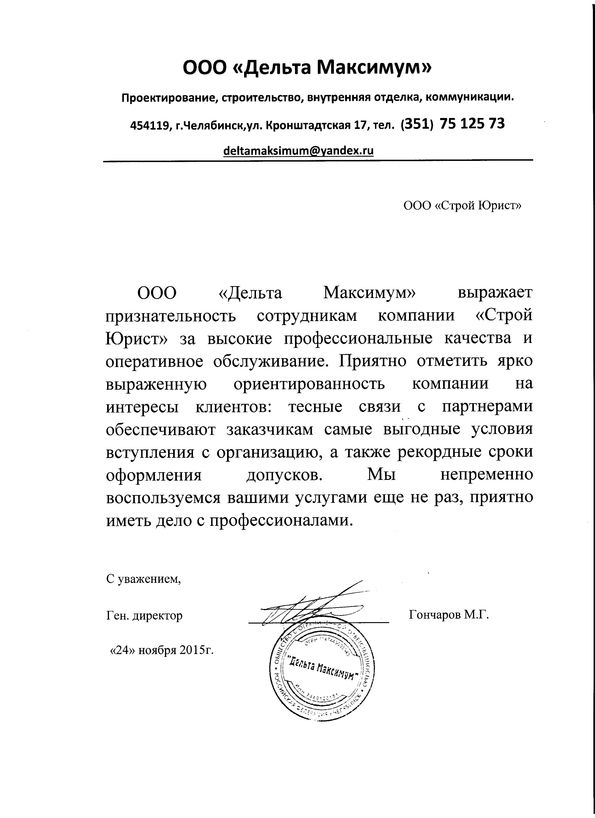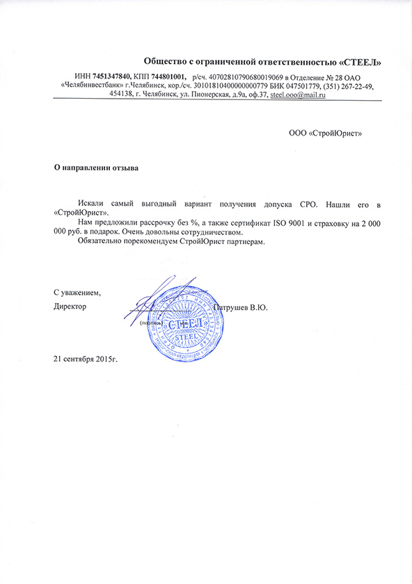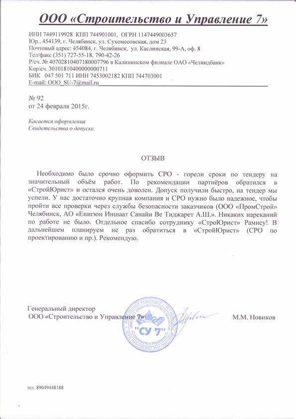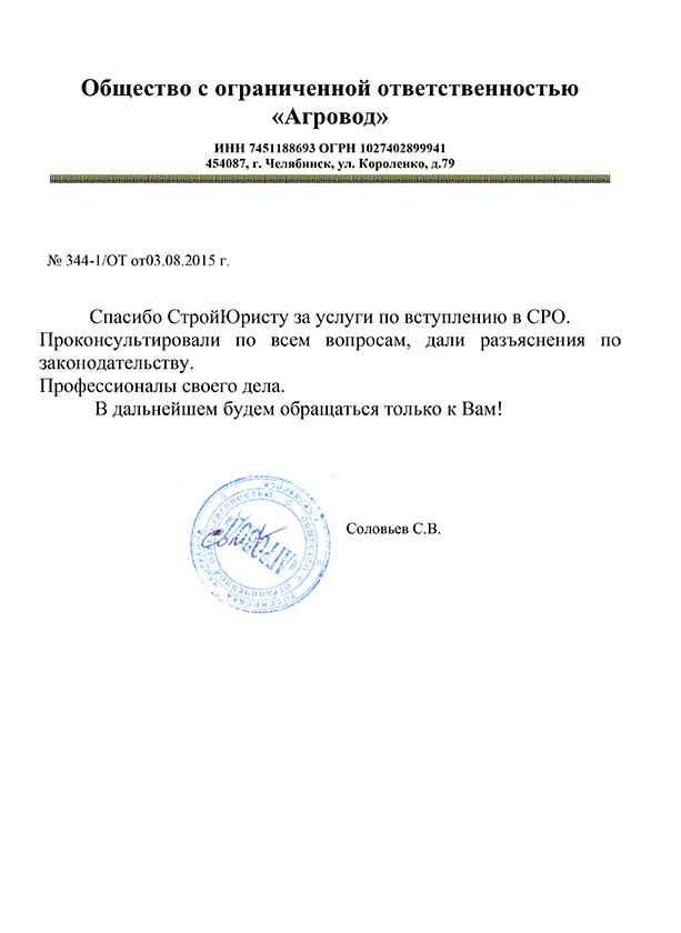 Отзывы клиентов "СтройЮрист" по вступлению в СРО в Видном