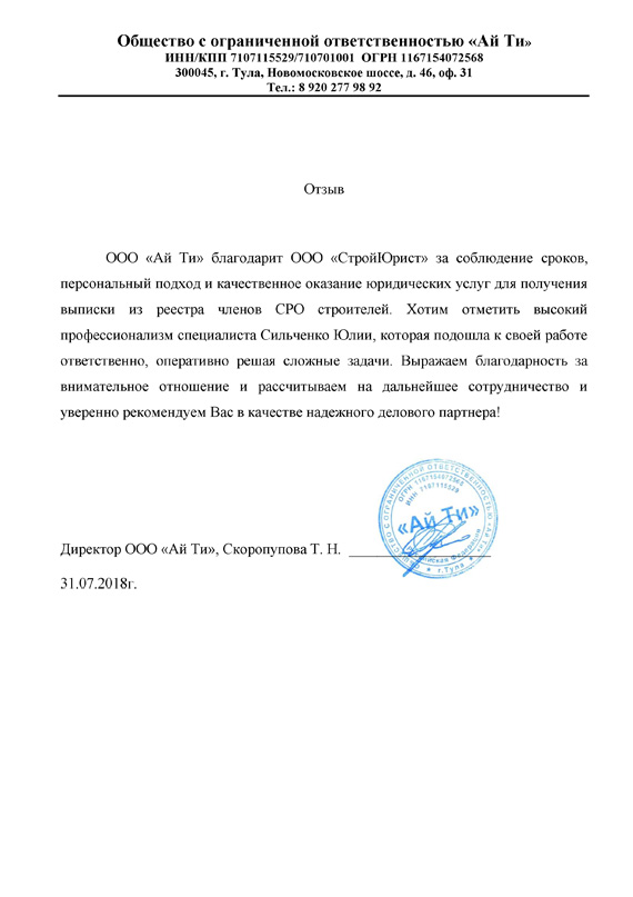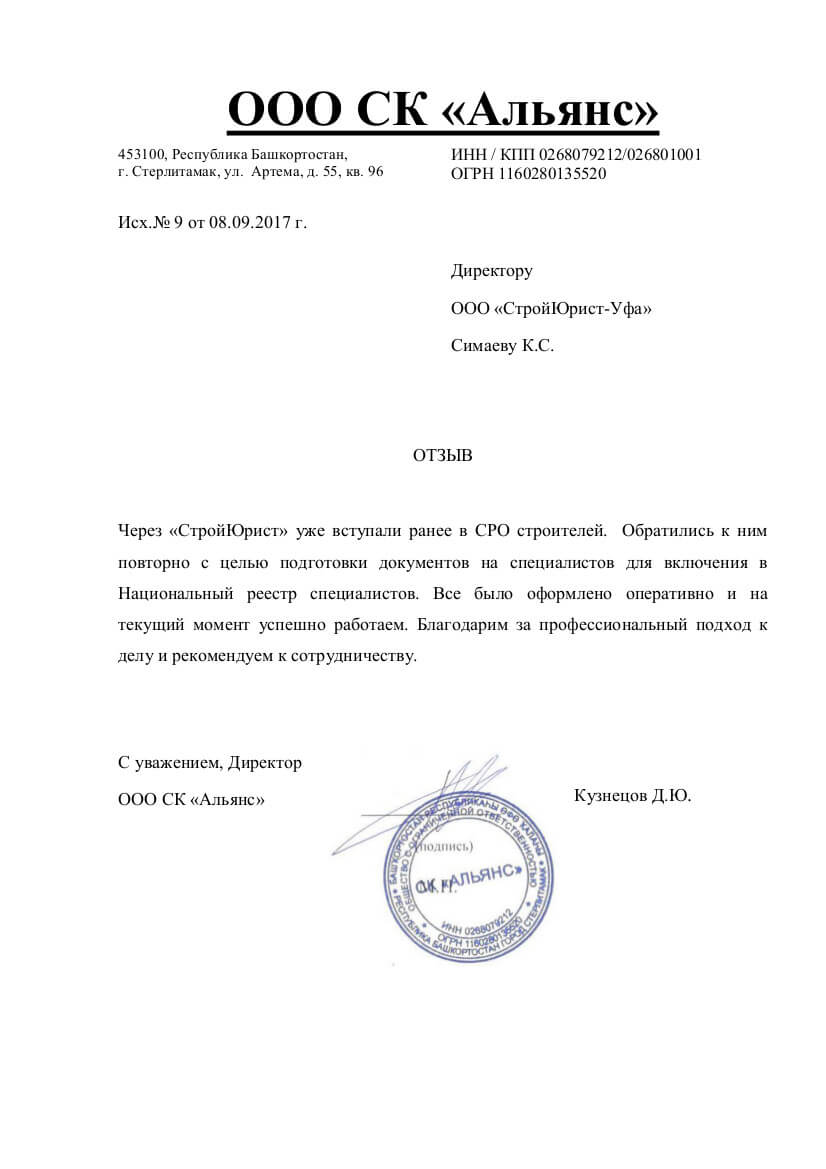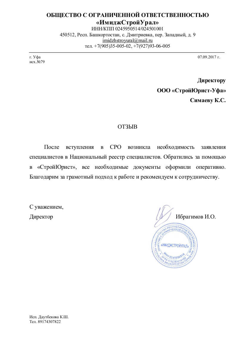 Отзывы клиентов "СтройЮрист" по вступлению в СРО в Видном