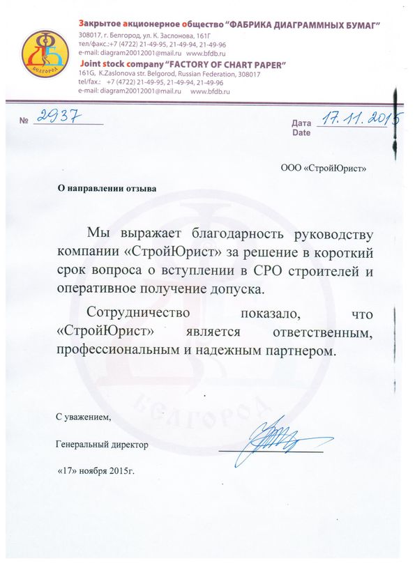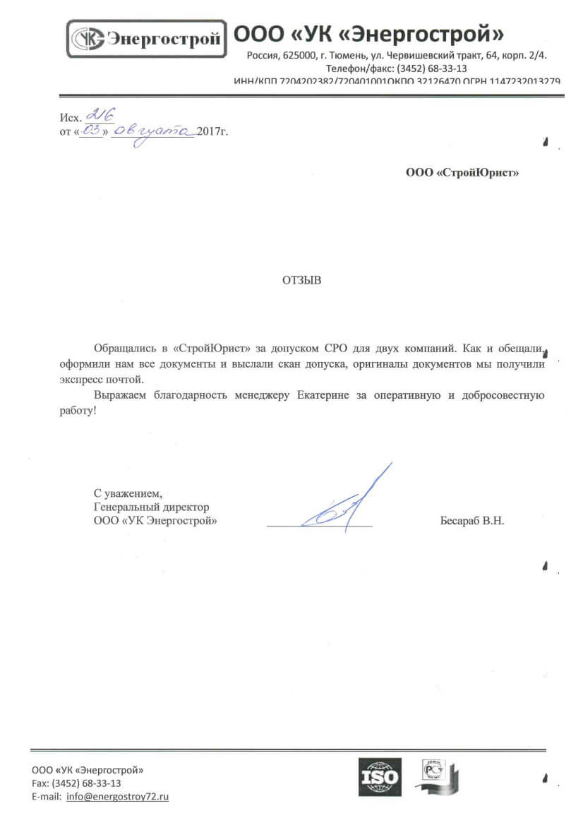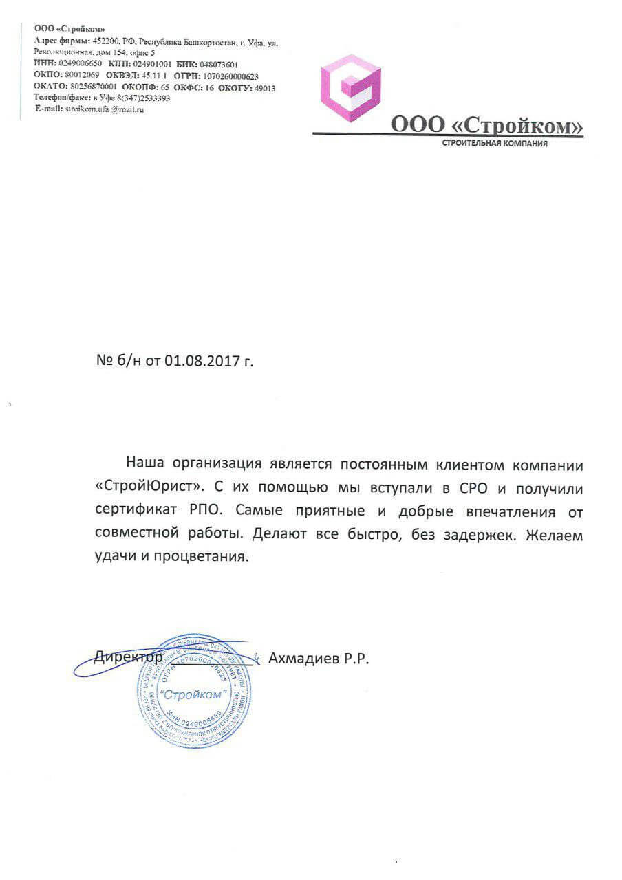 Отзывы клиентов "СтройЮрист" по вступлению в СРО в Видном